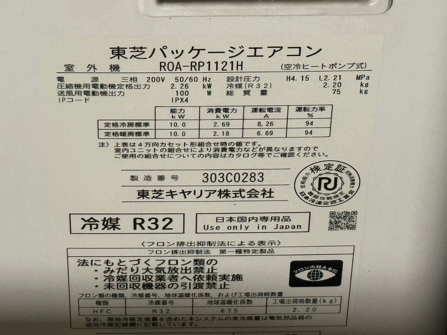 電源:  室外機電源:三相200V